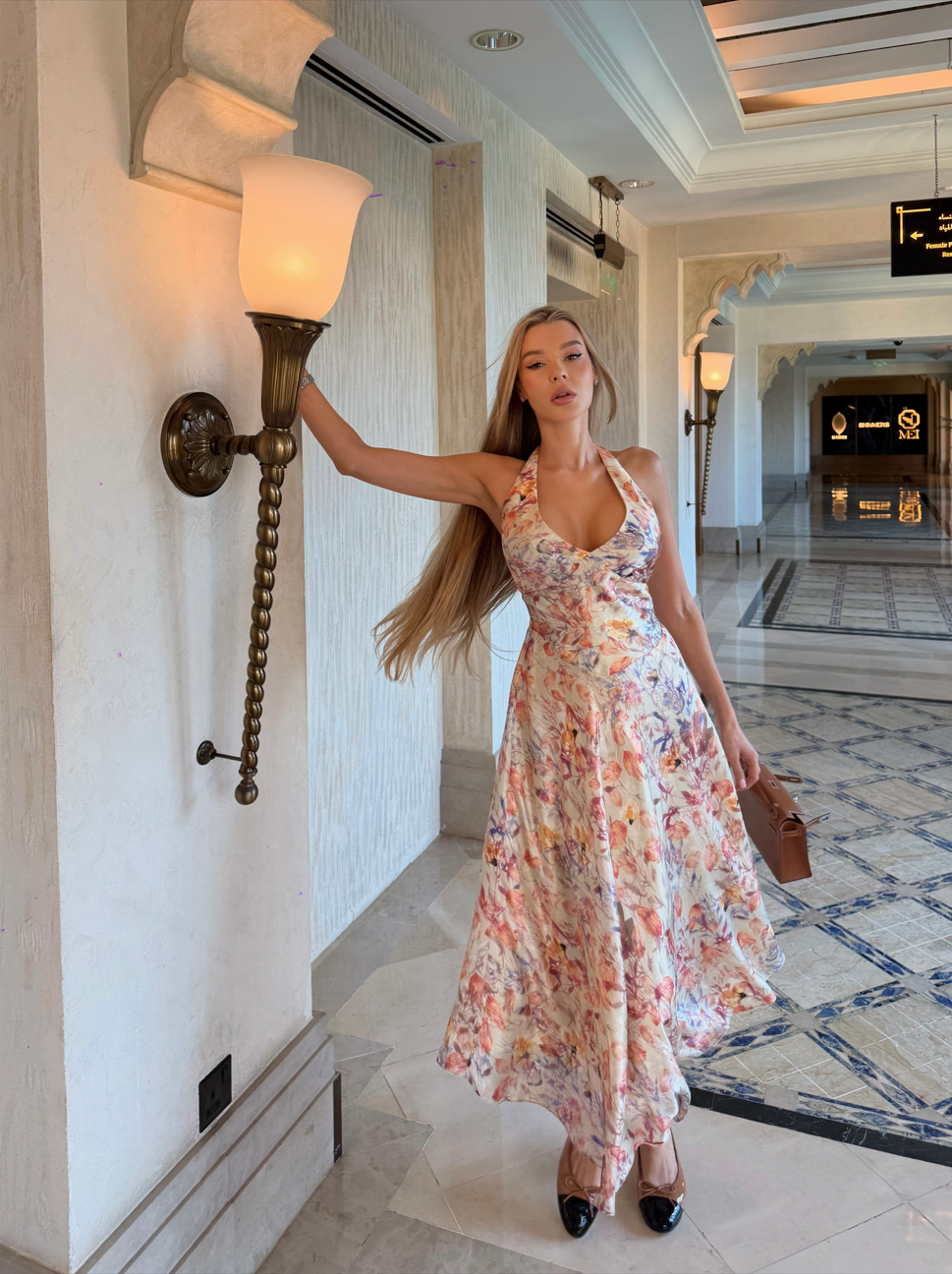 Платье Rosalie — изысканное воплощение женственности и лёгкой элегантности. Приталенный силуэт подчёркивает фигуру, струящаяся юбка создаёт мягкое, благородное движение. Глубокий V-вырез и утончённый цветочный принт придают образу чувственность и романтичную сдержанность.